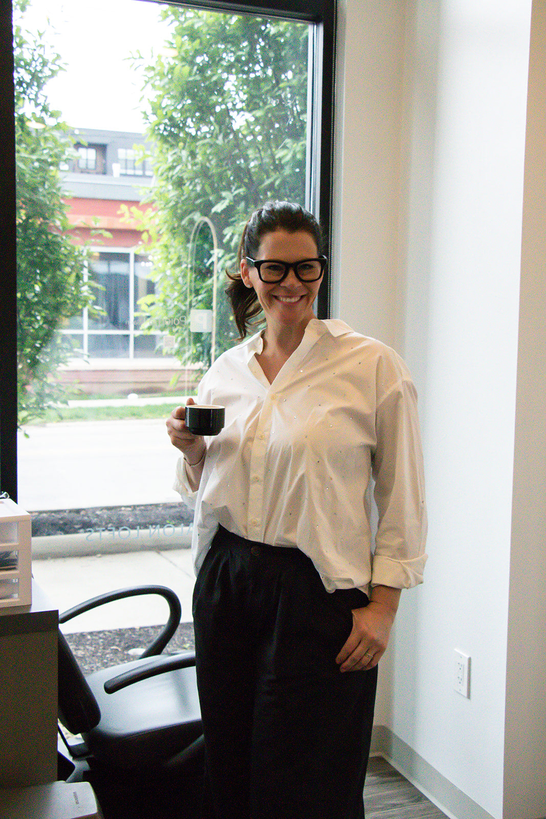 Laura is a busy professional in her 40s who loves fashion and wellness but doesn’t want to spend hours on her hair. With a smoothing treatment, a customized cut, and a color plan that keeps her natural and low-maintenance, Laura finally has hair that works with her lifestyle. Like so many of my clients, she now spends less time styling and more time enjoying life.